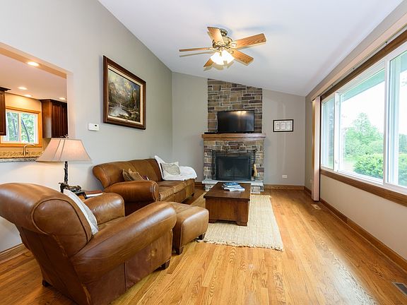 FANTASTIC UPDATED HOME IN CRYSTAL LAKE SCHOOLS WITH NEARLY 1800 SQUARE FEET OF LIVING SPACE ON 1.5 ACRES!! ~ Watch the sunrise from your deck or remodeled kitchen and watch the sunset by the fireplace from your living room and feel the beautiful cross-breezes ~ Hardwood Floors throughout main floor ~ Kitchen updated w/ custom cabinetry, granite countertops & pantry and island ~ Eating area leads out to level backyard where the possibilities are endless! ~ Newer refrigerator, oven, microwave, washer/dryer ~ Living Room features vaulted ceilings, beautiful picture window & newer stone floor-to-ceiling fireplace with wood mantle ~ Upstairs find 3 bedrooms including master w/ walk-in closet & ensuite updated bath ~ All bedrooms w/ ceiling fans & ample closet space incl. 2 walk-ins ~ Downstairs find large Family/Media Room set up for surround sound, Laundry Room, Office/Library/4th bedroom & 2nd Full Updated Bath ~ 2+ car garage was finished & insulated including gas pipe if new owner would like to heat the garage ~ Finished Large Shed that matches the home ~ NEW sidewalk from driveway to newer Feldco front door ~ 1.5 ACRES of private, sodded land with no HOA so the possibilities are endless ~ Windows and roof have all been replaced & extra insulation added to whole home ~ Move right in & feel like you are on vacation everyday ~ Award Winning CRYSTAL LAKE SCHOOLS!