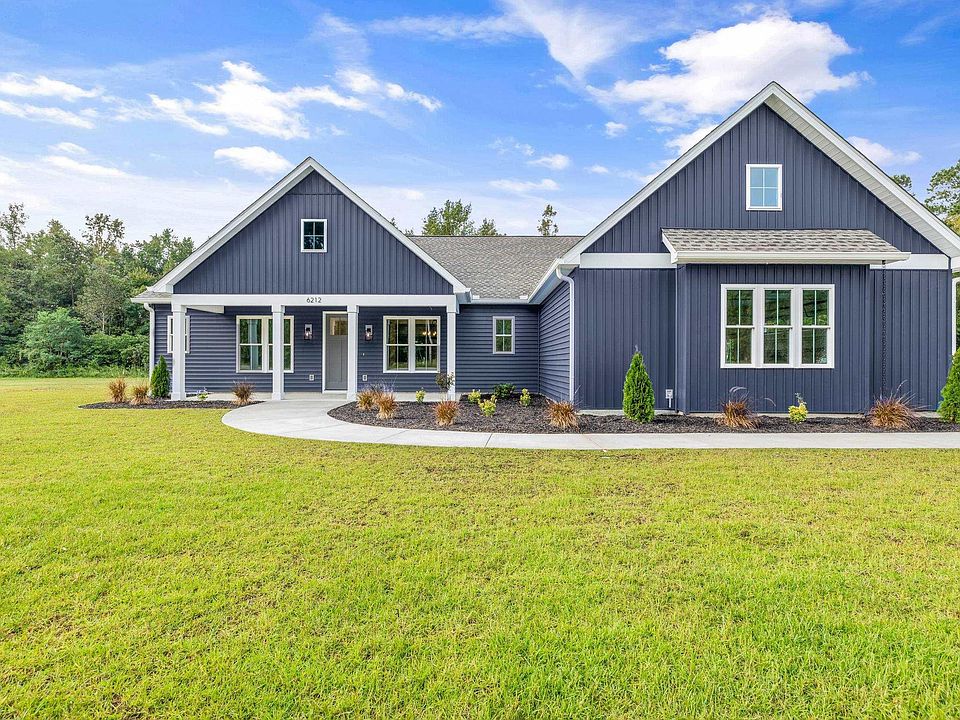 Welcome to your modern farmhouse oasis in Conway, SC! Nestled on a sprawling 1.64-acre estate lot, this stunning property offers a serene escape without the constraints of an HOA, allowing you to customize and create your own personal retreat. Boasting 4 bedrooms and 2.5 baths, this thoughtfully designed home features a split floor plan, with the master suite occupying its own wing for ultimate privacy and tranquility. As you step inside, you'll be greeted by an inviting open-concept living space highlighted by a soaring cathedral ceiling that seamlessly connects the living room and kitchen. The heart of the home, the kitchen, is a chef's dream with its expansive quartz countertops, luxurious tile backsplash, and high-end stainless steel appliances fueled by propane. Custom shaker-style cabinetry and a large walk-in pantry with built-in shelves provide ample storage, while the oversized kitchen island offers a perfect spot for gathering and entertaining. The master suite exudes comfort and elegance, featuring a lavish master bathroom complete with a double vanity and a massive tile shower adorned with Calacatta tile and multiple faucets. Conveniently adjacent to the master bathroom is the large walk-in master closet that flows into the laundry room equipped with cabinetry, countertop space and a sink. Outside, the possibilities are endless on the expansive lot, whether you envision creating a backyard oasis with a pool or building a detached garage for all of your precious toys. The back porch, adorned with two fans, provides a spacious outdoor retreat ideal for hosting gatherings or simply enjoying the peaceful surroundings. Located just minutes from historic downtown Conway, you'll enjoy a charming southern town vibe with boutique shopping and dining options. Plus, with easy access to Highway 22, Myrtle Beach's attractions, beaches, and amenities are just a short 25-minute drive away, offering the perfect blend of tranquility and convenience. Don't miss this opportunity to own your slice of modern farmhouse paradise in Conway, SC. Owner is a licensed SC Realtor and listing agent. All verifications of measurements are to be made by buyer.