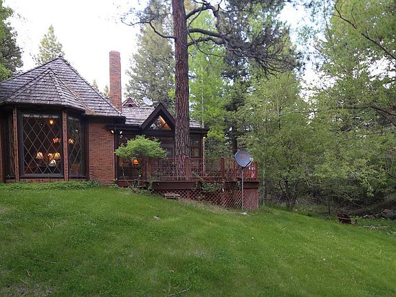Brick Tudor home on 5 plus acres, sale price of $625,000. Nestled among the pine and rocks, with Colorado Creek running through the property. This home is reminiscent of old English country side with the naturalized setting surrounding this home. The roof is nearing its life expectancy, Seller will give a $40,000 credit at closing for replacement.