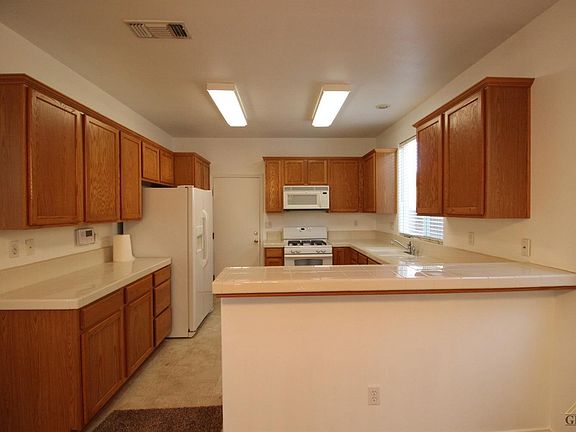 S.W. 2006 built 4 bed 2.5 bath 1867sf 2 story home ready for quick escrow. New carpet, paint and fixtures. Enjoy a large living area, dining area, kitchen features tile counters, with breakfast bar area, dishwasher, oven and built in microwave,downstairs 1.2 bath, laundry, ceiling fans. All 4 bedrooms are upstairs, master bath includes separate shower and tub + a walk in closet. Home also features Tile roof and covered patio