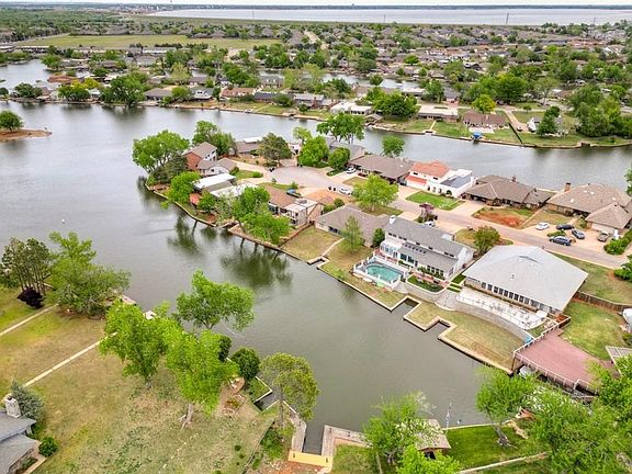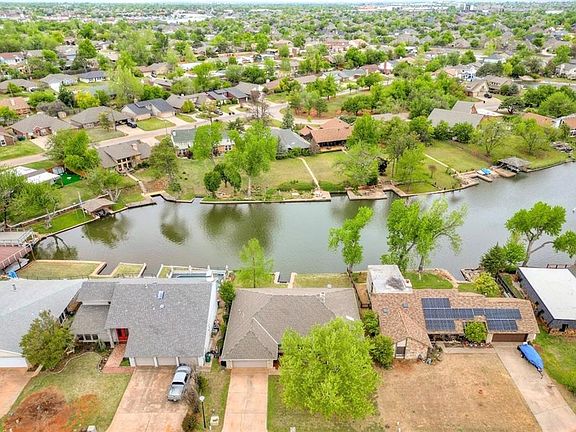 Incredible opportunity to own a beautifully updated LAKEFRONT home with gorgeous panoramic views & your own boat slip in the middle of OKC. Wakeboard, ski, paddle board, or fish all from your own backyard! This single level open floor plan provides captivating views of the lake from the spacious living area with a vaulted bead board ceiling, gas fireplace, built in bookshelves & wood floors throughout. The light & bright kitchen boasts a farmhouse sink, custom cabinets, stainless steel appliances, breakfast bar & eat in dining area with more amazing views of the lake. Additional room on the front of the home makes a perfect study or additional dining/living space. The fabulous split floor plan has 3 large bedrooms, each with plenty of closet space & access to one of the beautifully updated bathrooms, one with heated floors. Darling laundry space & mud room connects to 2 car garage. The covered back patio provides the perfect spot to enjoy morning coffee and evening sunsets on the lake!