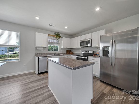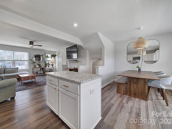 Lovely, 3 bedroom, 2.5 bathroom, end unit townhome built in 2021. This well-maintained home offers neutral paint, wide-plank vinyl flooring, plentiful natural light and whole home blinds. Kitchen features white Shaker cabinets and stainless appliances. Adjacent dining area and family room are perfect for relaxing or entertaining. Primary bedroom has an ensuite and walk-in closet. There are two additional bedrooms, a full bathroom and convenient laundry on the upper level. The lower level includes a flex space, which could make an ideal office for those working from home. There is a one car attached garage, back patio and vinyl privacy fence with views of the pond. Community playground. Convenient to Uptown Charlotte, I-85, I-77, shopping and restaurants.
