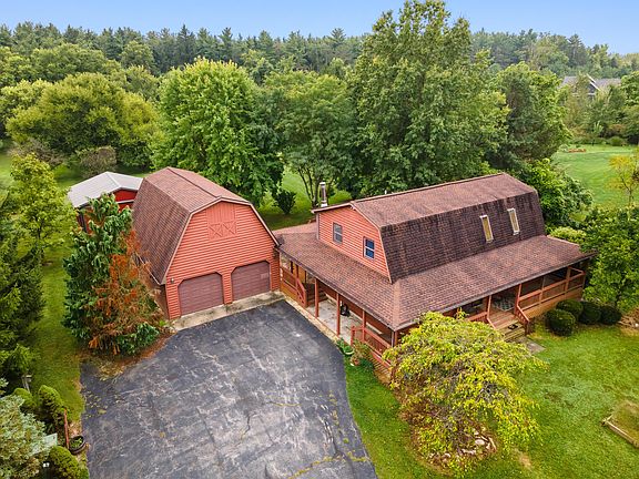 Rare and unique opportunity to own a beautiful and secluded property on 2.39 acres in Delaware County. Location! Country living close to all the big city amenities (Dublin, Powell, Columbus). Enjoy beautiful weather on the wrap-around porch. Entertain in the cozy great room with an open kitchen and attached flex room with a wall of windows, providing a gorgeous view of this private property. 1st-floor owner suite. 1st floor laundry. Barn with a covered patio adds options for loads of storage and/or entertaining. Screened porch, patio, pond, stream on lot - Nature lovers dream. Endless opportunities in this amazing property. See A2A