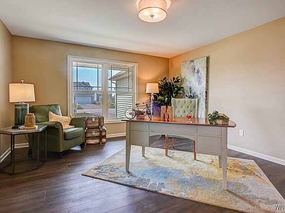 The spacious primary suite offers a relaxing retreat with a walk-in closet, additional reach-in closet, and a private bath complete with dual sinks and a walk-in shower. Cathedral ceilings in the family room and primary bedroom enhance the sense of space and charm. Additional highlights include First-floor laundry ,Gas fireplace, Durable luxury vinyl plank flooring and Covered rear patio and full front porch for outdoor enjoyment. Every detail has been thoughtfully curated to elevate both comfort and style. Taxes are TBD.