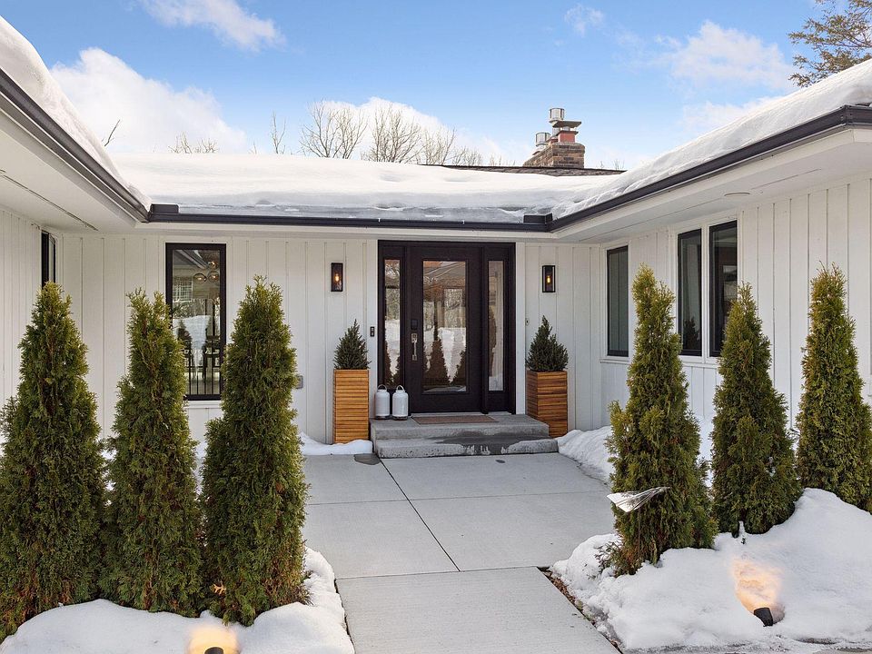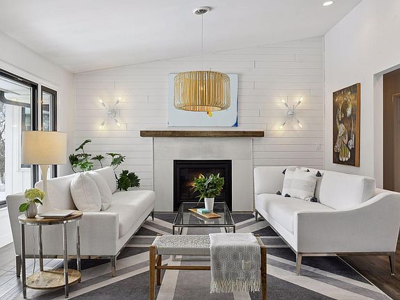 wall of windows overlooking a pond + woods, it lives like a year round vacation. The owner’s suite features dual walk-in closets, fireplace, huge window views + private bath. Designed for entertaining, the LL boasts a wet bar, beverage cooler, separate game area, fireplace, 80” TV, and