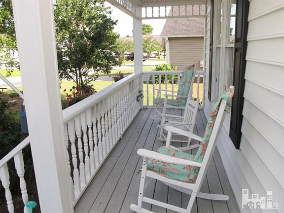 Don't miss out on this beautiful Cape-Cod style 3 bedroom, 2 bath home with rocking chair front porch in the sought after Sentry Oaks community. Entertain in the open kitchen and dining area which feature lovely hardwood floors throughout. Spacious downstairs master suite includes dual vanity sink, separate shower/garden tub and walk-in closet. This house is full of bonuses including recently updated multi-zone HVAC system, 2 car garage, huge bonus room, fenced backyard with garden area, and so much more! Enjoy relaxing in the large sunroom or under the awning on the back deck. Close to shops and restaurants and only minutes from the beach! This house is in move-in condition and will not last long.