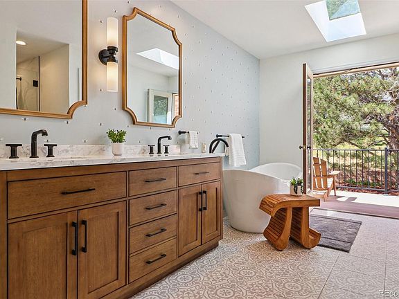 Tucked away in the coveted Cherry Creek Vistas neighborhood, this exceptional residence offers a rare opportunity to back directly to the serene expanses of Peakview Park — creating a seamless extension of your own private sanctuary. Spanning over 4,600 total square feet, this stately home presents five bedrooms, including a main-level bedroom ideal for guests or a home office, with an adjacent three-quarter bath. The chef’s kitchen showcases stainless steel appliances — including a new refrigerator and dishwasher — sleek surfaces, and a sunlit window that frames lush views of the backyard and park beyond. The kitchen flows effortlessly into a casual eating nook and an expansive great room, with soaring vaulted ceilings, a brick accent wall with custom bar nook, oversized windows, and a cozy fireplace. The main floor is completed with a newly renovated laundry room, along with formal dining and living rooms. Upstairs, the primary suite is a true retreat — recently updated with a luxurious spa-style bathroom featuring a standalone tub, and direct access to a private upper-level deck. The spacious basement is partially finished with a 3/4 bathroom, media room, flex space for a home gym, and an unfinished area providing tons of storage and the ability to add another bedroom if needed. With solar panels, plantation shutters, new interior paint throughout, a newer furnace and A/C, and new washer and dryer, this home truly shines. Outdoors, mature landscaping and the included hot tub give way to a stunning natural backdrop. New roof is being installed the week of May 26th, 2025. To top it all off, just steps from your door lies a scenic paved trail that winds its way to Cherry Creek Reservoir — ideal for biking, running, or simply enjoying Colorado’s natural beauty. A truly extraordinary offering that pairs timeless design with modern upgrades in an irreplaceable setting.