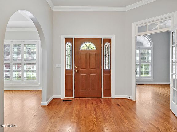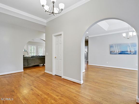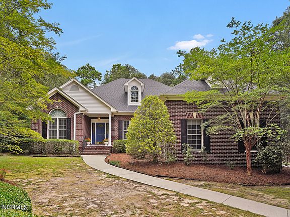 Tucked away in the center of the sought-after neighborhood of Timber Creek you will find this charming, single-level brick home situated on a large lot at the end of a cul-de-sac. Upon entering the home you will notice an office with built-ins and a sizable formal dining room, with hardwoods throughout the main living areas. The split floor plan of this home optimizes privacy in the spacious primary suite, which overlooks the lush fenced-in backyard and includes dual walk-in closets, a tray ceiling, and connects to the laundry room. The main living area and breakfast nook lead to an all-season room that features a vaulted ceiling and mini-split heating and cooling system, so you can maximize your outdoor living space regardless of the weather. The roof was replaced in 2020, and additional features include an extensive walk-in attic that could easily be converted to a bonus room, a Culligan water filtration system, and a Tesla home charger. Being in a quiet, established neighborhood that is located only 6 miles from Wrightsville Beach, and less than 3 miles from the fabulous restaurants and shopping in The Forum and Mayfaire, adds to the incredible appeal of this property.