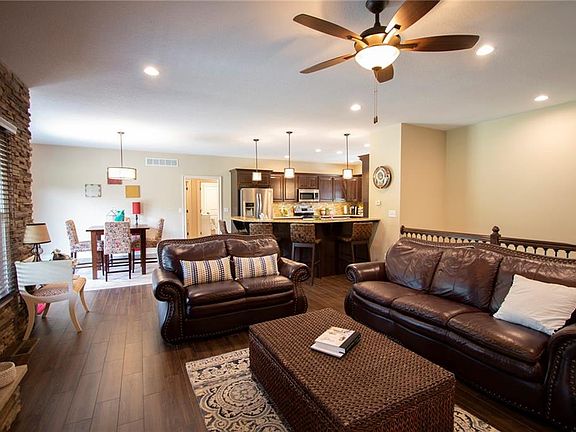 Great Open Floor Plan. Granite Counter Tops through- out. Beautiful kitchen fully equipped with wine cooler. Breakfast area looks out on large private treed lot. Covered back porch and patio area.Full Basement is partially stubbed for family room, additional bedroom and bath. Oversized 3 car garage with separate concrete pad on side for motor home. Large workshop area or room for that 4th. vehicle. Lots of storage. Quiet location surrounded by lots of nature. 3/4 acre lot.