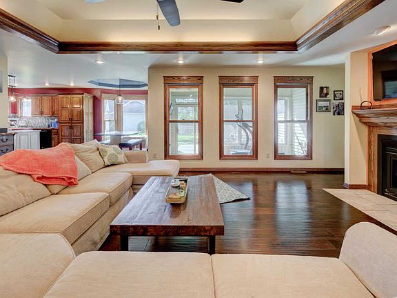 Nestled in Joplin's peaceful Highlands neighborhood, this 3-bed, 2-bath home on a corner lot offers comfortable grandeur & an amazing floor plan. Step inside the entry featuring vaulted ceilings & ceramic tile to a spacious living room that stuns! Large windows, rich hardwood flooring and trim, trayed ceilings with soft accent lighting, a gas fireplace & built-in storage make this the perfect space for entertaining or enjoying quiet nights with loved ones. Open to the living room is the kitchen, with ample cabinetry, pretty glass tile backsplash, & updated lighting, & a breakfast nook brightened by a gorgeous bay window. The adjacent formal dining room provides a perfect space for entertaining & is also open to the living area. The master bedroom features a walk-in closet & en-suite bathro