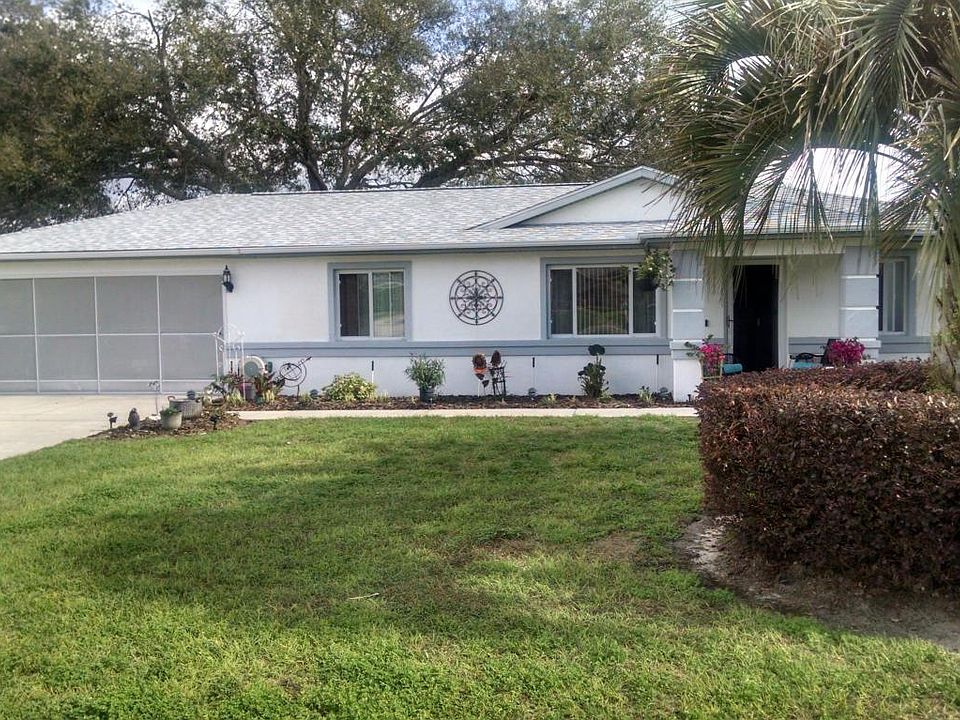 This home checks all the boxes, curb appeal, updated, turnkey, private large fenced lot, new roof. Gorgeous reclaimed wood look laminate floors throughout this split 2 bed/2 ba floor plan w/enclosed rear porch. Beautifully updated kitchen w/breakfast area and matching appliances. Designer light fixtures highlight the dinning room and breakfast nook. Mature landscape surrounds the property with lovely trees and palms.