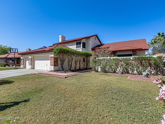 Charming Glendale home in the ideally located + central to everything Brandywyne neighborhood with no HOA! Lush green grass and red brick curb appeal with a 3-car garage and RV gate + parking! A spacious great room with tons of natural light greets you as you enter the home. The kitchen features granite countertops with white cabinets and stainless steel appliances. With the primary suite downstairs, it's split from the rest of the bedrooms upstairs. Additionally, this home features a versatile den (with a fireplace) AND loft! In the backyard, there's a large covered patio, lush green grass, and a gated pool - perfect for our AZ summers!