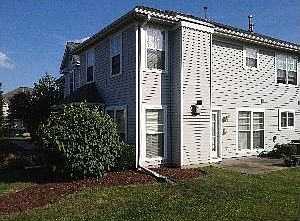 Contemporary town home end unit tucked away on semi private drive.Boasts spacious LR w/gas FP, half bath, dining area and walkout to patio. Pass-thru kitchen w/breakfast bar .Separate laundry room and 1-car garage. Master BR w/walk-in closet, vaulted ceiling and master bathroom w/soaking tub. Recessed lighting .Freshly painted and new upgraded carpet & padding.Easy commute to Rts 32, 29 & 95. Now Available. For pictures click on the link.