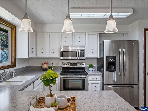 Enjoy the ease of single-level living in this SE Salem home. Newer roof, siding, AC, lighting, flooring, carpets, exterior paint. SS appliances. Kitchen remodel opens to dining & family/entertainment rooms. Livingroom windows bring in abundant natural light. Jetted tub & shower in the adjoining full baths. Step out into the fenced backyard from the dining room and enjoy your patio living area. Inside laundry, security system. All with easy access to shopping, schools, fitness, & I5.