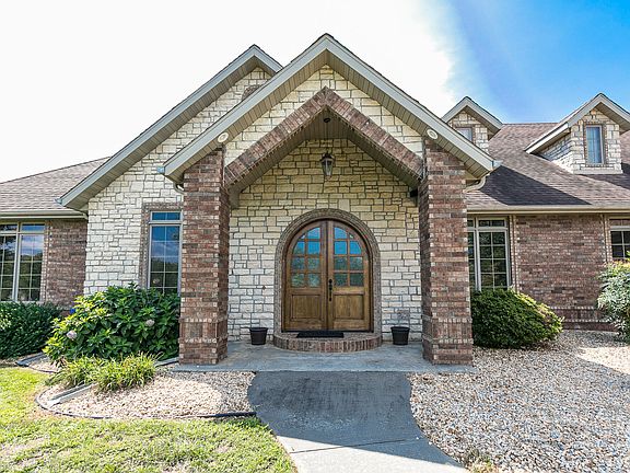 Sitting on almost 12 acres, this immaculate, custom-built, all-brick 4,329 sq. foot home was designed for quiet country living. As soon as you enter through the enchanting one-of-a-kind wooden door, you are greeted by an abundance of natural light from the oversized windows that boasts its park-like setting. The gourmet kitchen is what dreams are made of with the beautiful dark stained cabinets that compliment the granite countertops perfectly. It features an impressive island that has built-in storage and a breakfast bar for added seating. The kitchen opens up to the living room lined with beautiful hardwood floors centered by a fireplace with more custom built-in cabinets on both sides. This home offers a split floor plan with 3 bedrooms and 2 full bathrooms on one side and the master bedroom and its ensuite bathroom on the other side for ultimate privacy. The master bathroom checks all of the boxes with a jetted tub situated directly under a large window, dual vanities, tiled walk-in shower, and walk-in closet. Returning to the living room, the glass French doors will lead you to the exterior where perhaps some of the home's best features are. The huge covered patio and extended concrete area makes the perfect space for hosting gatherings this fall. This home also features an enormous barn that has 6 horse stables, a workshop, and a lean-to on the outside. Located in Rogersville schools and only being 5 minutes to Springfield, this home makes the perfect private getaway while still having all of your necessities close by. Call today for your private showing!