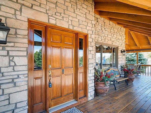Boasting tremendous curb appeal, this 5 bedroom, 4 bath, walk-out basement 2-story estate truly has it all. Main level features: *Formal dining room* *Den/Living room featuring access to the stunning wrap-a-round covered front porch, and a double-sided fireplace* *Convenient guest bath* *Soaring great room featuring a stone fireplace with handy built-ins, access to the patio and rear deck, and loads of light through custom 3M coated windows and sky lights* *Breakfast nook and eat-at island bar* Gourmet kitchen with quality appliance package including newer LG counter depth refrigerator and newer silestone counter tops and custom backsplash* Upper level features: *Master suite with 5 piece bath, his and hers closets, and a private deck with VIEWS of the Rockies! *2 additional guest bedrooms* *Renovated hall bath with dual sinks, new cabinetry, and onyx counter tops and shower. *Full, finished basement with rec room with fireplace, wet bar, and bed with en suite! This one has it all!