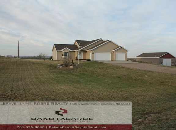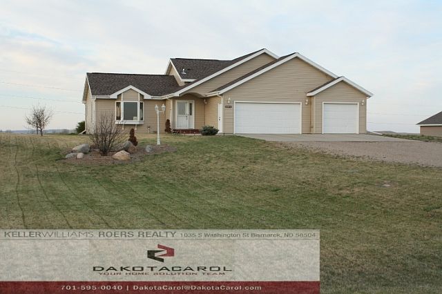 Wonderful South light illuminates 3 levels of this great 4 level. Located in Prairiewood Estates just South of Lincoln and North of Copper Ridge Estates, this home has one of the largest lots in this development being 1.71 acres. When looking out the wonderful patio doors on the living level and patio doors in the family room level you there is not a property directly behind you giving you the illusion of being on 40 acres! The main level has vaulted ceilings and a nice open dining area that has access to the kitchen or the living room. Bay window and sconce lighting add detail to the living room. Maple cabinets & pantry with contrasting black appliances bring this kitchen to life with added corner window at the sink to bring in the East and South views and light. Open staircase invites you to TV/Movies, Work-out, or hobbies (lower level) or Master suite with garden tub/large-shower-double vanity, South & West windows with room for seating and king size bed, and 2nd bedroom currently being used as the grown-ups office. The laundry room is conveniently located off the landing area on the 3rd level. There is a nice ¾ bathroom on this level as well. The 4th level holds 2 bedrooms that have egress windows, a nice open area that is large enough to hold a computer station or a reading chair with room for shelves or collectables. The mechanical room and a storage room are also found on this 4th level. The yard has trees in various stages of age. Some more established than others. A sprinkling system is set up and working that allows you to decide which areas you wish to keep green or not. The triple car garage has a floor drain and water. There is additional spaces to park on the West side of the garage covered in small river rock. This 4 bedroom 4 level property would make a great home! Move in this Summer and you will enjoy living in the country and the vast North Dakota skies!
