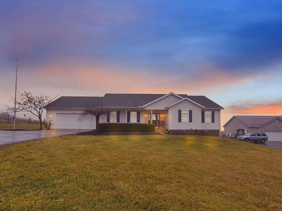 OPEN HOUSE -SUNDAY 1/28 3:00-5:00 PM -Welcome to your dream ranch-style home nestled on 1.29 acres in the serene rolling hills of Greenfield! This one-story gem features first-floor laundry, a cozy great room with a gas fireplace, a versatile den/home office space, and a fully applianced eat- in kitchen. Enjoy the convenience of an oversized 2-car garage with a heated & AC 11x6 Bonus storage room. Two exterior storage sheds 10x20 & 10x16. Embrace the rural charm just 6 miles from downtown shopping amenities and close proximity to Bainbridge, Chillicothe, and Hillsboro. Plus, indulge in outdoor adventures with Paint Creek State Park just 2.5 miles away. Seize the opportunity to experience peaceful country living!