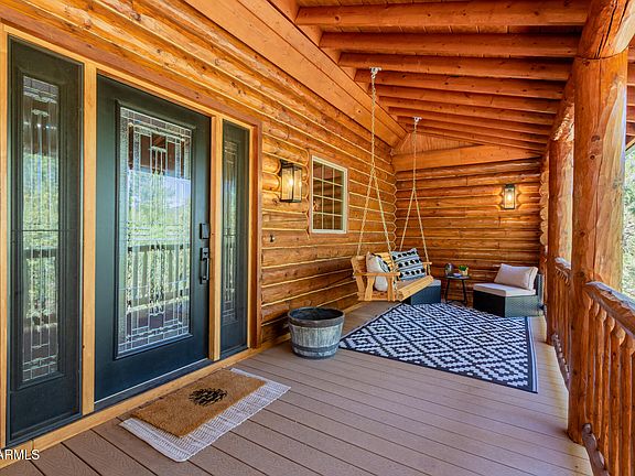 Special 4.99% fixed rate loan incentive!! Fully furnished, beautiful Full Log construction home is situated on the edge of the Tonto National Forrest with thousands of acres to explore. Enjoy mountain living at it finest, with unobstructed views, daily wildlife sightings, & the fresh mountain air! Notable features of this stunning home are: paid off solar, Tesla Powerwall battery, Generac backup generator, 2,500 gallon water backup water reserve tank, Starlink internet hardwired, & a state of the art camera monitoring system to keep an eye on the home while you are away. The ultimate off grid capable mountain retreat, with no HOA! Recent updates include: freshly chinked & stained, anew roof, new AC, alternative septic systems, new Anderson sliding doors, Bullfrog hot tub & much more