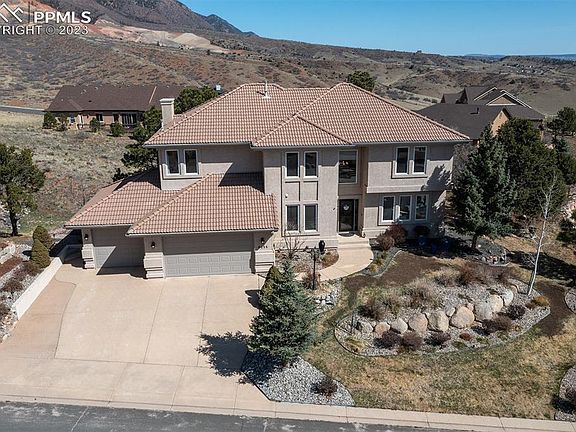 Absolutely GORGEOUS Mountain Shadows home on a MAGNIFICIENT LOT with 360 degree views out every window! Home is beautifully situated atop one of the truly premier Mountain Shadows lots. Pride of ownership abounds with amenities & updates galore! Home boasts an abundance of natural light and spectacular windows, 5 well-sized bedrooms, 4 completely updated baths, an oversized 3-car garage with high ceilings for extra storage & ample space indoor and out for entertaining. The gourmet kitchen features granite counters, high-end Electrolux appliances including a double oven, 36" gas range with downdraft, a Bosch dishwasher, extensive cabinetry with pull outs, a large island & spacious breakfast nook with stunning views. Kitchen and dining room have separate walk outs to the impressive new composite 27'x16' deck with a built-in drainage system. The soaring ceilings add to the home's openness and are complemented by 2 stories of oversized windows. Main level offers a living room, dining room, family room with gas fireplace, another bonus room that could serve as a home office, large laundry room & a half bath. Upper level includes an IMPRESSIVE primary owner's suite (26'x15') with fireplace, an adjoining office area, a spacious 5-piece en suite with soaking tub, spa shower & large walk-in closet. Two more large bedrooms with captivating views & a well-appointed Jack-n-Jill bath complete the 2nd story. And there's more! Lower level is an entertainer's dream: HUGE game room, upscale wet bar, theater room, two more large bedrooms & a full bath. Game room opens to covered & uncovered patio space that's just a hop, skip & jump into the awesome hot tub with spectacular views & treed privacy. Your NEW HAPPY PLACE will be found under the covered patio (with outlet for an outdoor TV) or enjoyed on the extensive composite deck with BREATHTAKING VIEWS. Dogs will LOVE the dog run! No HOA. Don't miss this once-in-a-lifetime, turn-key home! Great for multi-generational living.