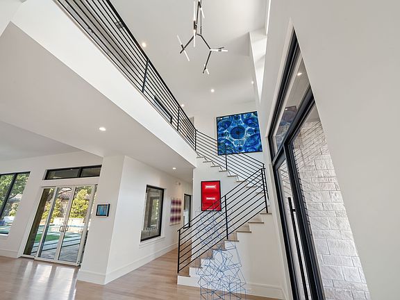 Nestled in a premier Preston Hollow location, this sophisticated Hill Country contemporary residence offers refined living at its finest. The inviting, light-filled open floor plan is thoughtfully designed for both elegant entertaining and comfortable daily life. This home offers over 6,300 sf of living space and includes 5 bedrooms and 5.1 baths. On the first level, discover two distinct living areas, two dining areas, a private study, and a spacious primary suite featuring a luxurious, spa-like bath with custom closets, and a split secondary en suite bedroom. The gourmet kitchen is a chef's dream, appointed with a large island and premium suite of Thermador and True appliances. The second level features three split additional en suite bedrooms and a generously sized game room with a beverage bar. Step outside to a pristine backyard oasis, where a covered patio, a cozy fireplace, a dazzling pool, and a low-maintenance turfed lawn create the ultimate retreat. This impeccable custom residence also includes extensive storage throughout, a four-car garage with epoxy floors, a motorized entry gate, a generator, and an integrated smart home system for seamless control. The prime location near the Northaven Trail and the upscale shops and dining at Preston Royal and Preston Forest perfectly complements this exceptional home.