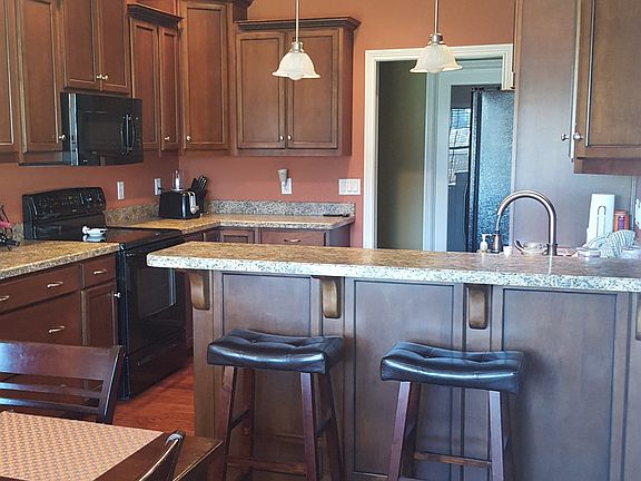 Custom Built home Whispering Oaks II - 3 BR 2 bath with 9' ceilings throughout - Custom Cabinets. Coffer ceiling in LR, cathedral ceiling in Kitchen, Pantry off of kitchen, large 2nd BR - double closets for plenty of storage in 2nd & 3rd BR, dual heat system, water softner, 16x18 coverage patio on rear. 35 year shingles on roof. 3 car wide driveway. MB 12x14, 2nd BR 12'9 x 12'8 3rd BR 10x11
