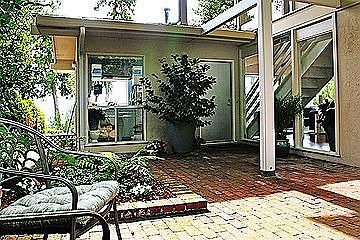 The peaceful courtyard greets you and sets the stage for this amazing mid-century stunner. Level-in entrance with a wall of windows and open concept will please the most discerning buyer. Rich eucalyptus floors, cathedral ceilings, lux finishes, great indoor/outdoor connection with a sizable deck that leads down to the delightful rear garden. Step into the sophisticated kitchen with a suite of Gaggenau appliances, new stone countertops, Heath tile, Franke fixtures, cork floors and eloquent lighting compliment the high-end appliances. The main floor also features a marble fireplace, numerous built-ins for added storage, a bar area, a one bedroom suite, sharing access to the side patio and a full bathroom to pamper yourself with extravagant touches including Boffi fixtures and Heath tile. Upstairs you will find two more full bedrooms with balcony and full bathroom with laundry. Additionally there's a bonus room with separate entrance perfect for a home office.