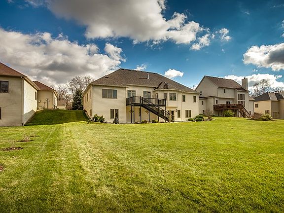 Stunning Ranch home with walk-out basement built by John Schmucker. This home has it all with lots of upgrades. Great curb appeal as you approach the home with landscaping all around. As you enter, you are welcomed with hardwood floors, decorative pillars, large dining room with crown molding, chair rail and a beautiful view of the lake from the Great Room. The Great room features a 3 way gas fireplace, crown molding and a relaxing view outside. Kitchen and Nook area has ceramic tile floor and back splash, custom cabinets, a large pantry & high end appliances that all stay. Oversized trex deck off the nook, great for entertaining or relaxing while admiring the pond. Split floor plan with large master bedroom featuring; a great view, trey ceiling with mood lighting, large walk-in closet, ceramic tile in the bath with double vanities, separate shower area and jet tub. Laundry on the main level. Bedroom 2 and 3 are good sizes that share a full bath with ceramic tile floor. The lower level also features a large family/rec room great for entertaining, room for a theatre, craft room or exercise room, a oversized 4th bedroom and full bath, wet bar with ceramic tile & refrigerator. And there is still plenty of storage. The list continues with a 3 car garage with poxy flooring and attic storage; surround sound throughout, full yard irrigation system, RO system, water softener, sump pump alarm, humidifier on the furnace and a large deck with and oversized patio below. Call to schedule a showing today.