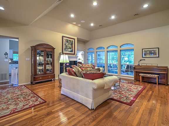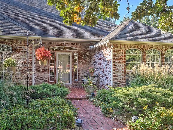 DELIGHTFUL, PRISTINE ONE LEVEL home in Jenks SE School District boasts beautiful large newer chef's kitchen open to large family room with brick fireplace! All hardwoods throughout with fireplace in formal living. Wall of windows in master and opens to patio. Large covered pation looking on to park-like private back yard! Storage Shed custom built to match house makes perfect storage, fort or doll house. Floored attic. Bose stereo speakers and window treatments in master are excluded.