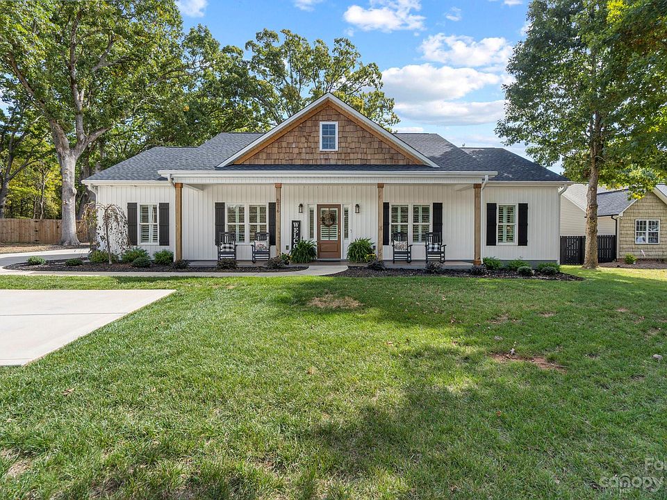 GORGEOUS FARMHOUSE LOCATED IN A BEAUTIFUL COUNTRY SETTING WITH NO HOA- OVER HALF ACRE LOT- WELL MAINTAINED- 3 BEDROOMS 2 BATHS- OPEN FLOOR PLAN- KITCHEN INCLUDES SPACIOUS WORKING ISLAND, STAINLESS APPLIANCES, WHITE CABINETS- WALK IN PANTRY- DINING AREA- LARGE GREAT ROOM- FARMHOUSE MOLDINGS- PRIMARY BEDROOM BATH WITH DUAL VANITIES, WALK IN TILE SHOWER WITH GLASS DOOR, WALK IN CLOSET- COZY ROCKING CHAIR FRONT PORCH- COVERED/SCREENED BACK PORCH FOR ENTERTAINING OVERLOOKS LEVEL LOT- STORAGE BUILDING- THIS IS A MUST SEE THAT WILL NOT LAST LONG!