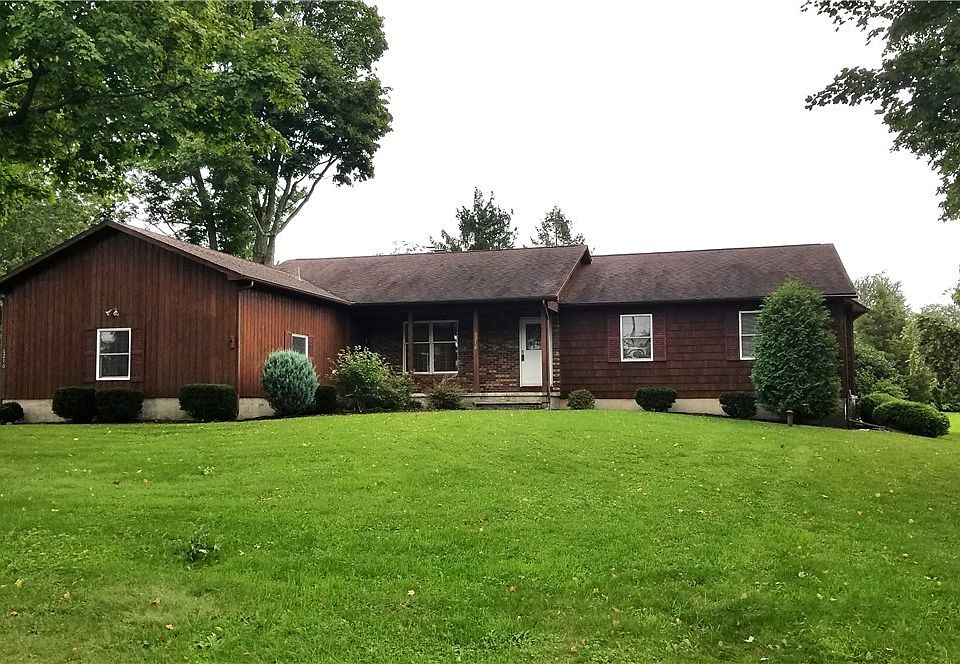 Nestled on a 1.76 acre lot with apple trees and grape vines, this 4 bedroom 2.5 bath Ranch features a living room with a double sided fireplace overlooking a large back yard, combination eat-in kitchen/family room, formal dining room, foyer entry, first floor laundry, mudroom, covered front and back porches, full basement with a Bilco door leading to the back yard, a 1.5 car attached garage and a 2 car detached garage. Truly a rare find located minutes from Joseph Park on Oneida lake, shopping and US Route 81. The Hog Kettle located between the driveway and sidewalk does not convey.
