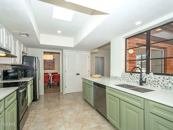 Don't miss this fabulous townhouse in Catalina Pueblo! Marvel at the mountain views & relish the privacy from the wonderful wraparound patio. Step through the serene courtyard entry into this peaceful home & discover an updated kitchen featuring SS appliances, quartz counters & pretty tile backsplash. Enjoy breakfast in the cozy nook w/views or entertain in the generous living area. Retreat to the primary bath w/dual sinks, granite counter, & walk-in shower, & guests will love the guest bath w/granite counter & tub/shower combo. Other features include a 2-car garage, spacious laundry room & newer LVP flooring. 3 community pools, great architecture & lush desert landscaping. Excellent proximity to Tucson's best shopping & dining, this home offers the perfect blend of comfort & convenience.