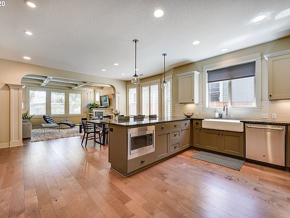 • RoomFamilyRoomFeatures: Fireplace, Beamed Ceilings, Family Room/Kitchen Combo, Bookcases, Engineered Hardwood