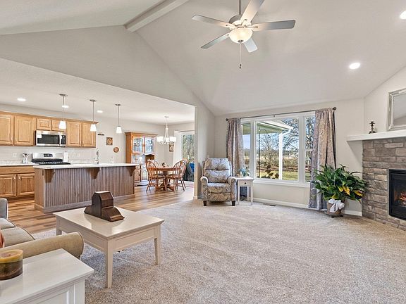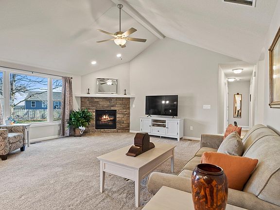 *OPEN HOUSE SATURDAY 12/8 2pm-4pm* One year old Carriage Place built home in an established neighborhood. This custom home was built and completed in early 2023 and loaded with amenities any buyer will appreciate. As you walk up to the entry you will notice the wonderful curb appeal and mature landscaping. Stepping into the home you will be greeted with a large cathedral great room with fire place and lots of light! The kitchen boasts custom cabinetry, tile back splash and stainless appliances. From the eating area you walk out to a covered porch with a view of the beautiful yard. The mud room is very large with coat closet and access to the laundry room. Three large bedrooms on the other end of the home complete this floor plan. The owners suite has a walk in closet, private bath with dual vanities, and a walk in tub/shower. The whole house generator and the remaining builder warranty will bring you peace of mind for years to come! There is no reason to build when this practically brand new home is waiting for a new owner.