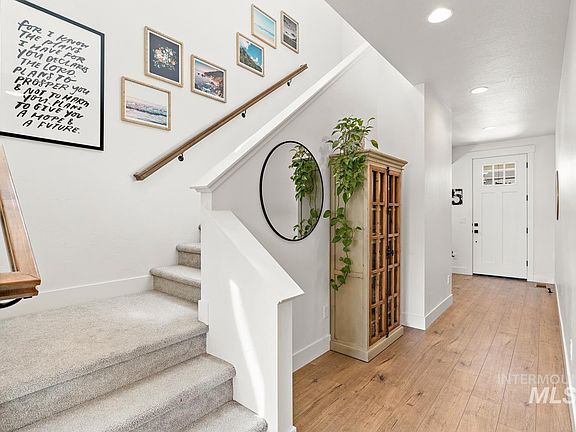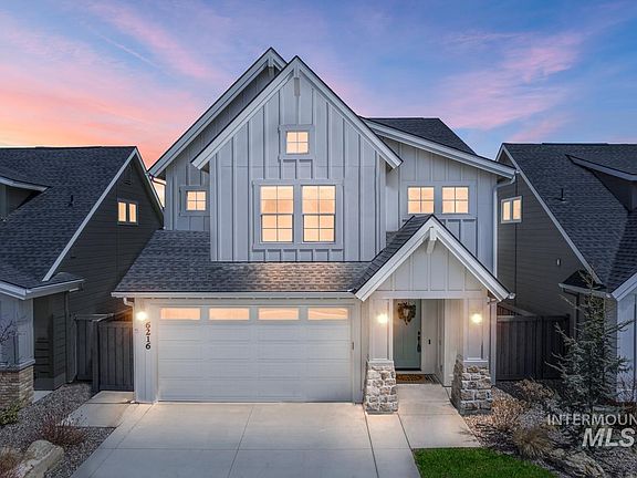 Better than new Alturas home in an amazing location! This semi-custom home has a multitude of upgrades throughout. Upgraded LVP floors through entire main floor. From your oversized island you see floor-to-ceiling shiplap fireplace with built-ins. Kitchen features high cabinets, walk-in pantry with appliance shelf, full backsplash, quartz counters, and Bosch appliances. The backyard features a covered patio overlooking the creek, upgraded landscaping with new trees/shrubs, and a private gate to the neighborhood paths. Upstairs is the large primary suite with tray ceilings, GORGEOUS views of Bogus Basin, dual vanity, walk-in closet, and tiled walk-in shower. This home features a tankless water heater, water softener, and carbon filtration system to help with the longevity of the home and water quality. Century Farm has 2 community pools, playgrounds, walking paths, parks, and YMCA.