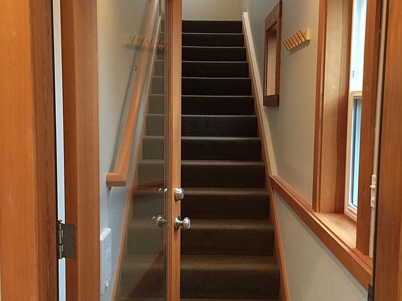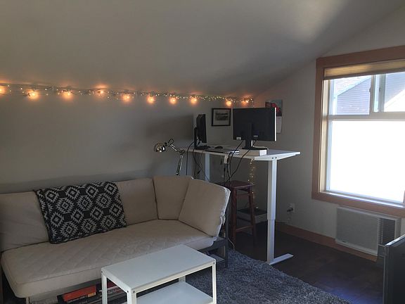 Are you dreaming of your own quiet, private place in a beautiful location close to parks, trails, bike paths and the river, yet only minutes to downtown? This ADU is in its own building with its own entrance, and no shared walls. It is up a set of private stairs and has two skylights and big windows. It is only two blocks to the river and the biking greenway and has ample secured storage for your bicycle, kayak or paddleboard. Free and easy street parking. Hardwood floors, fresh paint, a walk-in closet, glass stop stove and Whirlpool washer/dryer in the unit make this a place you'll enjoy calling home. It is a unique, unfurnished, high quality, architect-designed studio with loft bedroom and office area. Featured in Oregon Home Magazine. Loft is accessed by a library ladder. Peekaboo view of Mt. Hood. Superb location close to OHSU, Downtown, Sellwood, Lewis and Clark, Johns Landing and South Waterfront shops and restaurants. Walking distance to Willamette Park and River Trail, coffee shops, Zupan's, Cafe du Berry, Fulton Pub, a sailing club and a climbing gym. Rent includes high speed wifi, water and garbage. Cats welcomed. Owner provides high speed WIFI, garbage and water
