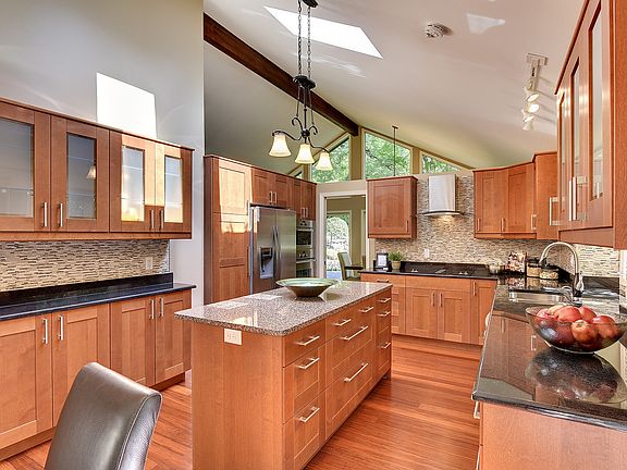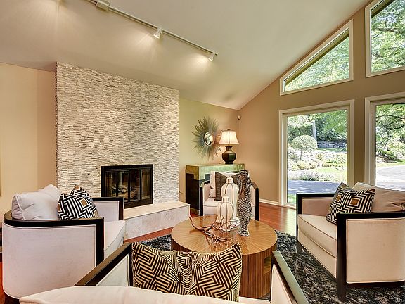 Fully-renovated soft contemporary with tons of light on wooded .44-acre lot. New carpet, new hardwoods, new stainless steel appliances, new kitchen, new paint, new steam shower, new fireplaces, new cedar shake roof and skylights (2013) and new furnace (2013). Many warm spaces in a home great for entertaining.