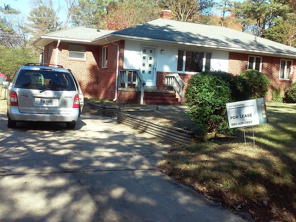 Lovely, clean and bright 3 bedroom brick rancher with extra-large fenced yard and paved driveway. Wood floors, new heat pump, all appliances, 1 bathroom , kitchen with nice cabinets. Fresh paint and recently refinished floors. Large storage shed and utility room with washer and dryer.Large rear deck for entertaining! Non-Smoking Home To View Please Call 804-382-744412 Month Lease. $25 Application Fee per Adult.