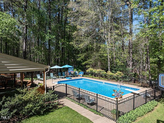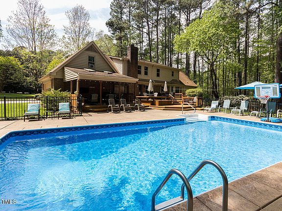 Welcome to Your Backyard Bliss at 6216 Woodmark Trail! Dive into the lifestyle you've been dreaming of—literally. This beautifully maintained home is tucked away in the highly desirable Penny Road area, perfectly positioned between the best of Downtown Raleigh and Cary. Whether you're commuting, dining, or heading out for weekend adventures, you'll love being right in the middle of it all. But let's talk about where you'll really want to spend your time: outside. This home boasts a sparkling in-ground pool, expansive patio, and a huge backyard that feels more like a private retreat than a suburban lot. Host summer BBQs, throw unforgettable pool parties, or just enjoy a quiet morning coffee while soaking in the peace of your surroundings. There's room to roam, room to garden, and room to grow. Love your toys or need workshop space? You're covered—with 4 garage spaces total, including a 2-car attached garage and a 2-car detached garage, there's room for cars, hobbies, gear, and more. Inside, the layout is just as inviting. Lives like a four bedroom home with bonus. Natural light pours through large windows, and the living spaces flow effortlessly from the cozy living room to the dining area that's perfect for everything from takeout to Thanksgiving. The kitchen is ready for action, with plenty of counter space and storage for the home chef—or aspiring one. The primary suite is located on the main floor, offering convenient, one-level living. Upstairs, you'll find a second potential primary suite, making this home a smart choice for multi-generational living or long-term guests. Whether you're relaxing poolside, hosting friends, or just enjoying the peaceful vibes of the neighborhood, 6216 Woodmark Trail offers a rare blend of convenience, charm, and outdoor living that's hard to find in today's market. Don't just buy a house—make a splash with this one.
