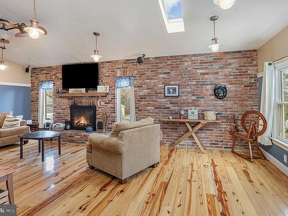 Unique home situated on 2.9 acres featuring beautiful hardwoods throughout this 1908 home. Living room has a fireplace for cozy winter nights and an exposed brick wall and wainscoting. So much character. Kitchen has butcher block counters. Primary bedroom has a double sink vanity and a soaking tub. Out back is great for entertaining. There's a covered patio and an above ground pool with a deck. Large flat yard. There are 2 garages. One has an 8000-pound car lift. This house is in good shape and is awaiting that buyer who is ready to put their finishing touches on this awesome property!! Home is being sold "as is."