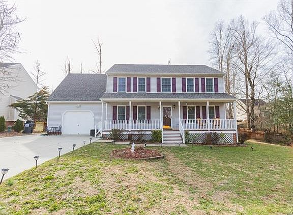 Super cute 4 bedroom, 2.5 bath home with almost 2200 sq. ft. with full front country porch! Family room features hardwood floors, gas fireplace and double doors to large rear deck. Kitchen features vinyl floors, eat in area, bay window, electric cooking, and dishwasher. Formal Dining Room with Hardwood floors, chandelier, crown molding, picture molding and leads to kitchen. Upstairs features 4 bedrooms. 3 of them have hardwood floors and 4th bedroom has carpet. Other special features include double wide concrete driveway, 1 car attached garage, large front porch, large rear deck (16'5"x15'1"), fenced in rear yard, newer roof, and second floor laundry area!!