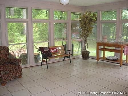 So many features in this 5BR home that sits on a cul-de-sac, 1.47 AC, & walking distance to Floyd Central H.S. There is plenty of space for everyone in this home! The LARGE TILED SUNROOM WITH SCREENS is great to enjoy the outdoors behind closed doors! There are 3 FIREPLACES, that have recently been swept. One WOODSTOVE is in the FAM RM with BUILT IN BOOKCASES & WOOD BEAMS in the ceiling. The 2nd you will find in the SPACIOUS LIV RM. The 3rd you will find in the ADDED FAM RM in the BASEMENT where you can ENTERTAIN FAMILY AND FRIENDS! You will see NEW COUNTERTOPS in the kit and NEW STAINLESS OVEN HOOD that gives a nice touch with the OPEN FLOOR PLAN. The stove, DW, & wine cooler remain & fridge is negotiable. You will adore the XL MASTER with its own PRIVATE DECK with beautiful view of the woods. In need of some spa time? This home features a Japanese spa room! Set a private showing to really see what it has to offer! Home offers electric pet fence with collars and 2-10 home warranty! Call today for a private showing Rachel Dreyer 502-386-3669!