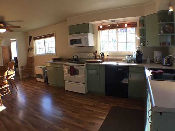 Charming, classic Dunsmuir chalet, just blocks from the Sacramento River. Clean and move-in ready. R3 zoning opens up uses as a duplex or vacation rental. Recent remodel. Vinyl clad windows throughout. Large kitchen with beautiful laminate flooring. Spacious living room with high ceilings looks out toward the ridges/trees east of the Sacramento River. Downstairs family room is decked out with beaded wood paneling, wainscoting and wallpaper. It has a large family/rec room and laundry room in addition to the bed & bath. Downstairs also has it's own entrance from outside. Side yard fenced by white picket fence and de-commissioned downhill skis. Back courtyard bounded by high retaining wall and wooden fences. Drive under single car garage. Monitor heater on each floor.