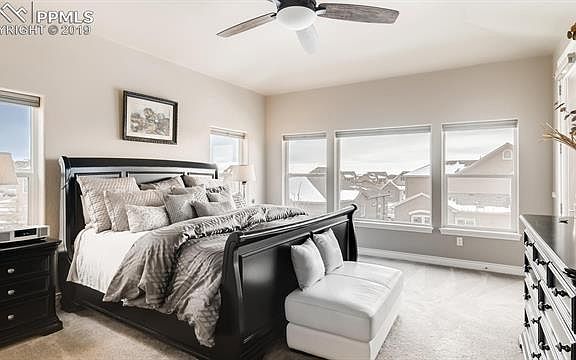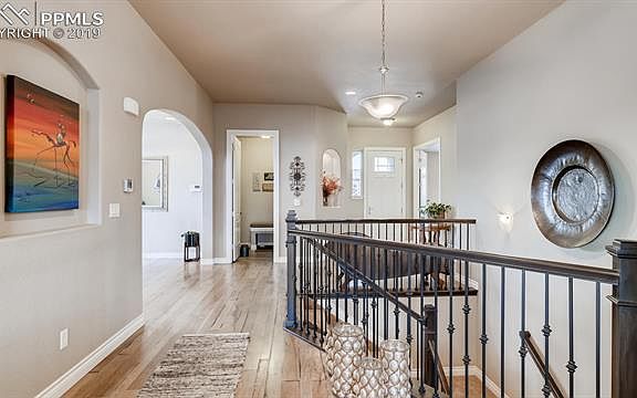 Luxury Maintenance free living in this one of a kind semi-custom ranch plan. Enjoy main level living, spacious entry, hickory hardwood flooring throughout, gourmet kitchen, office, master bedroom, laundry and unobstructed views of Pikes Peak! In your fully finished basement, you will find 3 full bedrooms with walk-in closets, upgraded wet bar, fireplace, built-in surround sound and much more. Enjoy plenty of storage in your oversized three-car garage located on a quiet cul-de-sac. - Gourmet Kitchen, soft close dovetail cabinets- Double Ovens - Butler Pantry and coffee area with built-in microwave and 6 burner gas range - Hickory Floors throughout - Hunter Douglas -high/low blinds- Cul-de-sac- formal dining room - custom mater closet and butler pantry closet - 2 gas fireplaces - one of the upper level and one in the family room in the basement- wet bar, with fridge, sink, dishwasher, wine rack - rod iron spindles on all of staircase and surround - the whole house surround indoor and out - Full landscaping with firepit extended covered deck trec deck material with covered patio and stamped concrete- Full finished oversized 3 car garage insulated and drywall - Surround sound indoor and outdoor - Upgraded light fixtures- Finished Mechanical room, with room for a small in-home gym - All TV mounts included- Full house alarm system ( provider of your choice) - Backs to a walking trail, next to 5-acre open park - Walk-out basement - Close to schools, parks, and lake
