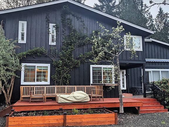 Stunning Craftsman estate on 4.76 private acres featuring a fenced organic garden and fruit trees. Sun-drenched interiors with expansive windows showcase nature year-round. The home offers high-end finishes throughout, including marble flooring and a beautifully updated kitchen with premium appliances. Designed for both comfort and functionality with 3 bedrooms plus den and rec room, propane fireplaces, heat pump, and ample space for hobbies and toys. A remarkable 1,900 sq ft garage/shop with 3-phase power and multi-level storage completes this exceptional property—offering the perfect blend of luxury, space, and privacy!