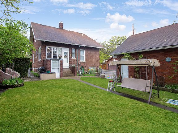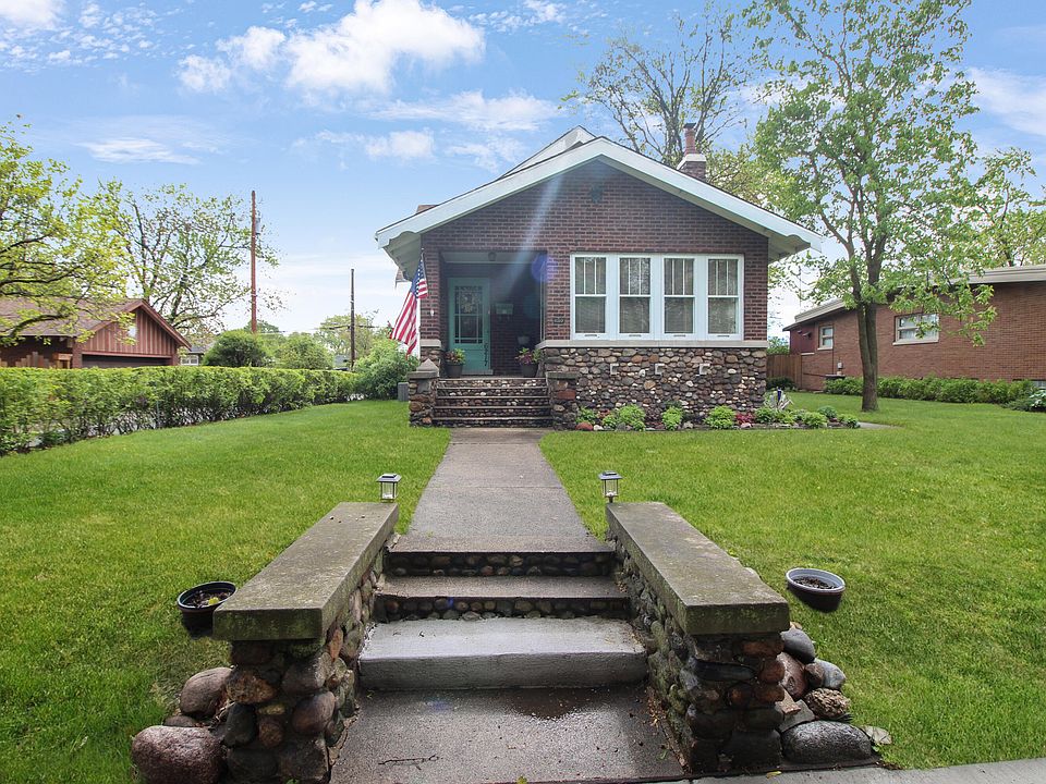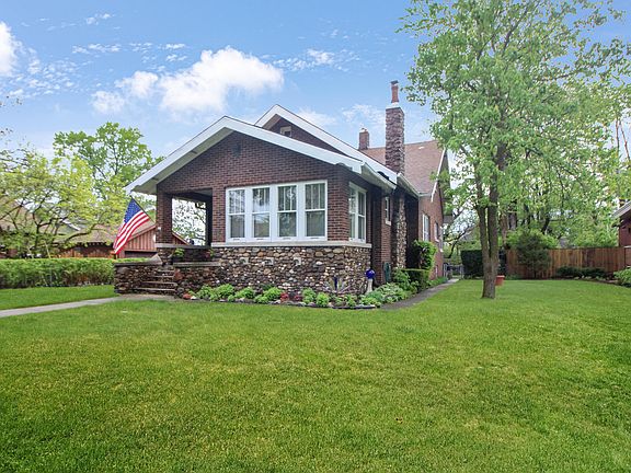 BEAUTIFUL ALL BRICK & STONE BUNGALOW with 2.5 CAR BRICK GARAGE! You'll love the OLD WORLD CHARM of the homes in this LOVELY TREE LINED neighborhood! QUALITY WOOD CRAFTMANSHIP! As you walk into the foyer you'll enjoy the GORGEOUS WOOD DOOR, 5" WOOD WALL BASE & DOOR FRAME TRIM! Living Rm features STONE FIREPLACE w/built in Wood Mantel, Bookcases & ceramic tile hearth! WOOD CROWN MOLDING. Enter your WOOD FRENCH doors & enjoy watching the sunset in this Lovely SUNROOM w/wood trimmed windows all around! SPACIOUS FORMAL DINING w/Crown Molding & Wood Columns. Efficient Galley kitchen w/pantry & appliances open to QUAINT BREAKFAST NOOK. MASTER BEDRM w/Original Hardwood Oak Floor, closet & Ceiling fan/light. 2nd Bedrm w/Carpet (wood underneath) closet (with built in dresser & shelves) & Ceiling fan/light . Hall Linen Closet. MAIN FLOOR BATHROOM w/large soaking tub, long single sink vanity, toilet & ceramic tiled floor. HUGE FINISHED BASEMENT w/lots of possibilities includes Huge Rec Room, great for entertaining includes BUILT-IN CUSTOM BAR! (Pool table & Piano can stay) Family Rm great for HOME THEATER or GAMING! BASEMENT OFFICE/STORAGE ROOM an additional bonus! Root cellar storage great for storing canned goods or possible wine cellar. 3/4 BASEMENT BATH includes Shower, Sink & Toilet. FINISHED LAUNDRY RM includes washer, dryer, sink, laundry chute & folding counter with cabinets, shelving and drying hanging racks! Vented glass block windows. BASEMENT INCLUDES PRIVATE EXTERIOR ENTRANCE. Over 1200sf of Unfinished Attic Space! NEW 2022 ($9800) CONCRETE SIDE ENTRANCE DRIVEWAY to Brick 2.5 Car Garage includes opener & PULL DOWN STAIRS TO FULL ATTIC LOFT! Gorgeous BACK YARD w/Flagstone Patio, morning glories and grape vines on fence. IMPROVEMENTS INCLUDE Roof (2012) AC Lennox (2014) Hot water heater (2019) Garage electrical line (2023) Chimney rebuilt & tuckpointed 2022 ($8000) New sewer & storm drain check valve clean out 2022 ($2000) SELLER INCLUDING 1 YR HOME WARRANTY!