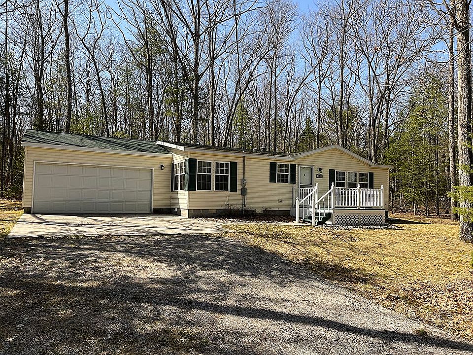 Fully furnished home on 2 acres. This ranch home with heated garage is conveniently located across the road from Hubbard Lake and only 2 miles to the Hubbard Lake North End boat launch. Nestled on a colorful wooded lot, this 2 bedroom, 2 full bathroom with attached garage is the perfect up north get away or full time home. This home has a well designed 960 square ft. open living space with a wide open feel. All new electrical light fixtures, new air conditioning, new cement driveway and sidewalk, drywall, insulation and heat added to the garage for a warm winter workshop. Bright and spacious kitchen with eat in dining. Laundry area located off the kitchen. New well and septic in 2008. Don't miss this truly move in ready home. *Closing will be with Northern Title & Escrow Agency