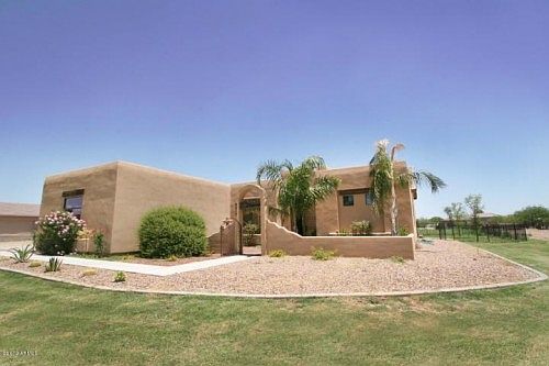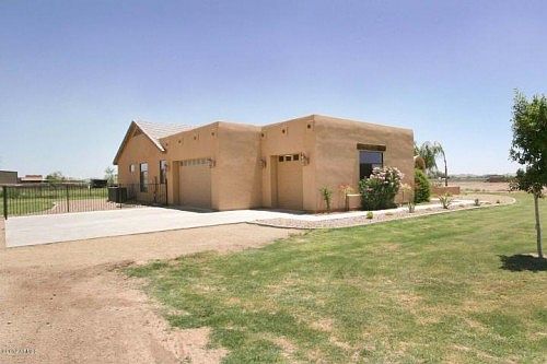 Complete info: http://6217s196thdr.agentmarketing.com - 4 bedroom 2,5 bath Custom Home situated in over 1 ACRE HORSE PROPERTY. Surrounded by lush farm land this luxurious home is highly upgraded. Huge Vega's with rope accents, art niches, 10' ceilings, knotty alder solid wood doors, cabinets, crown moldings and base boards. Slab granite through out the kitchen, baths and laundry. The huge great room features a Kiva fireplace, an entire wall of glass windows and arcadia doors overlooking over 40' of covered patio. The master suite highlites include a huge jetted soaking tub, a walk-in shower, his & hers walk-in closets and tile floors. THIS IS THE COUNTRY LIFE STYLE YOU'LL LOVE. Move in Ready. *BONUS* Wall Mounted 55'' Flat Screen is Included. Call The Mojica Real Estate Team at 602- 687-0617 for a private showing of this gorgeous 4 bedroom 2.5 bath Horse Property in Buckeye.