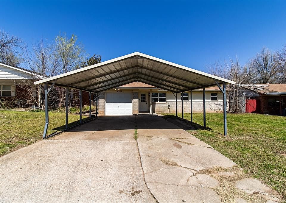 THE 3 BED 2 BATH IS A GREAT STARTER HOME. FRESH PAINT AND CARPET, UPDATED KITCHEN AND MASTER SHOWER AND SEVERAL OTHER UPDATES. NICE SIZE FENCED YARD. TWO CAR DRIVEWAY WITH 2 CAR CARPORT. GARAGE IS PARTICALLY CONVERTED TO THE SECOND LIVING AREA AND SPACIOUS UTILITY ROOM. OVERHEAD DOOR STILL OPERATES FOR ACCESS TO PART OF GARAGE FOR MOWER, ETC. CLOSE TO SHOPPING, I-40, TINKER, MEDICAL AND OTHER CONVENIENCES.