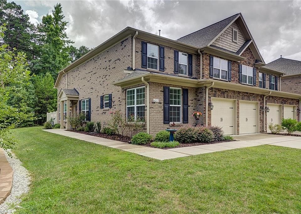 A stunning private, end-unit townhome located in convenient Jamestown community, Bentley Park! This 2-story brick beauty delivers an inviting entrance, an open floor plan, a wall of windows, natural light, a soaring ceiling in the living room, impeccable wood flooring and crown molding. The main level primary suite showcases tray ceilings and an en-suite with a tiled walk-in shower and a dual vanity. The exceptional kitchen offers leathered granite countertops, white cabinets & a breakfast nook sounded by windows, and a wooded view. The upper level boasts 2 additional bedrooms, a full bath, and a loft/flex space! You can't overlook the benefit of having a 2- car garage in a townhome with shelf storage in the garage, a walk-in attic, and a separate pull-down attic area. Relax and entertain on the patio with a tree-line view to enjoy!